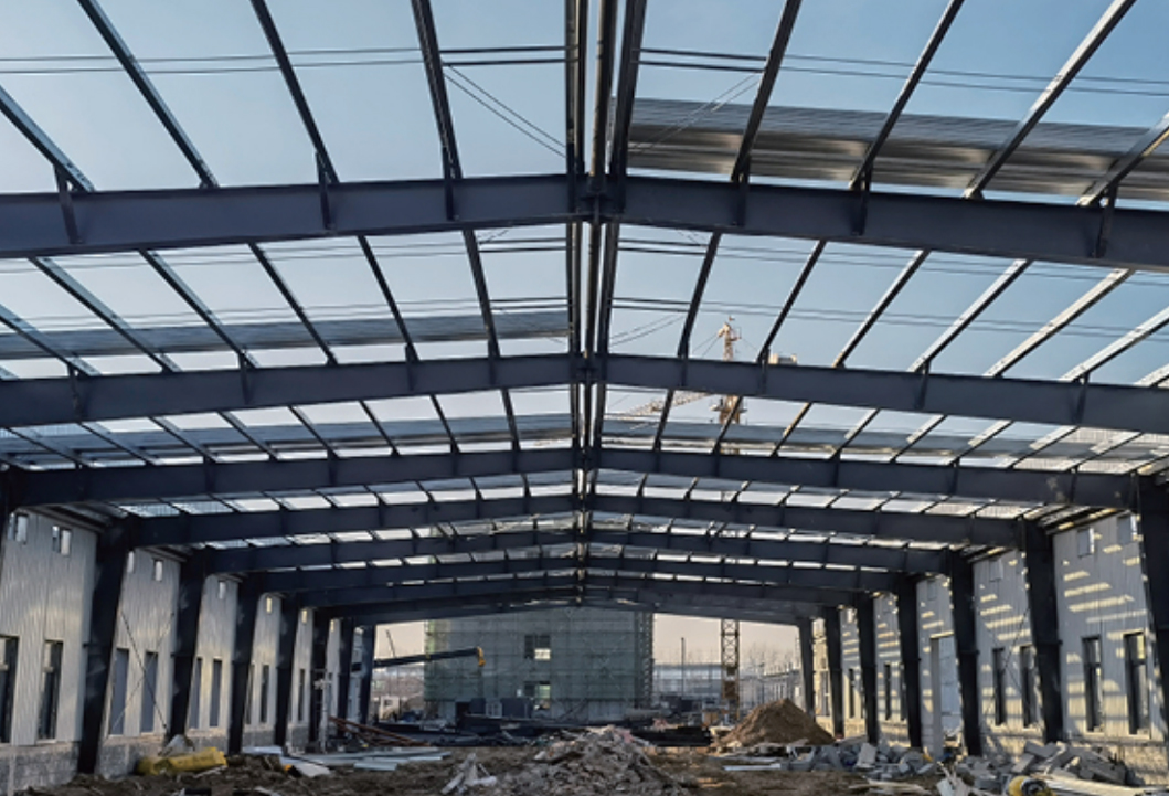 该工程位于徐州沛县西环路西侧、丰沛路北侧,占地面积约 400 亩。总建筑面积 30 万平方米。采用抗风柱屋面梁、钢梁、钢柱、系杆等钢结构产品。