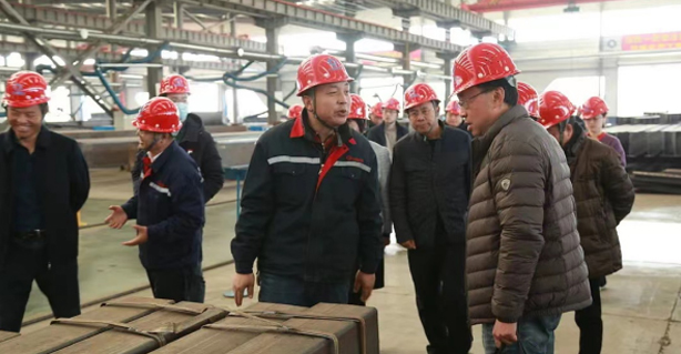 随后,领导一行人进入会议室,彭总对建厂至今生产规模组织构架发展路程与今后计划进行的详细汇报。一期项目主要生产钢结构住宅体系的核心产品(钢管束构件)及配套用楼承板、钢结构以及通过技术接口集成建材产业链等,项目投产后,可年产 6 万吨钢管束及 10 万吨钢结构、50 万平米钢桁架楼承板,总结起来钢结构的显著特点就是抗震性能好,施工周期短,节能环保,减少扬尘,布局灵活,节省建设投资等优点。目前正在做的项目:淮海绿色纺织园,徐州软件园,珠海格力项目。已完成的项目:印尼德龙1#上部(1批次)加工制作、汝南垃圾焚烧炉2#钢结构、上海东航金叶苑3#地块项目钢结构、沛县殡仪馆、大屯中心小学等项目得到合作单位一致好评。