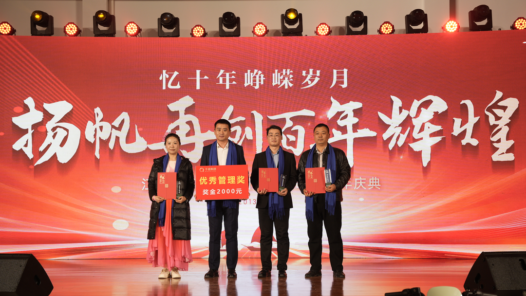 在这星光璀璨的夜晚,千禧集团颁发“优秀员工奖”、“优秀老员工奖”、“优秀团队奖”、“优秀管理奖”和“最佳贡献奖”,以表彰那些在各自岗位上默默奉献、成绩斐然的员工。这些奖项不仅是对个人成就的认可,也是对整个团队精神的颂扬。他们卓越的表现,将激励着我们共同迈向更加辉煌的未来。
